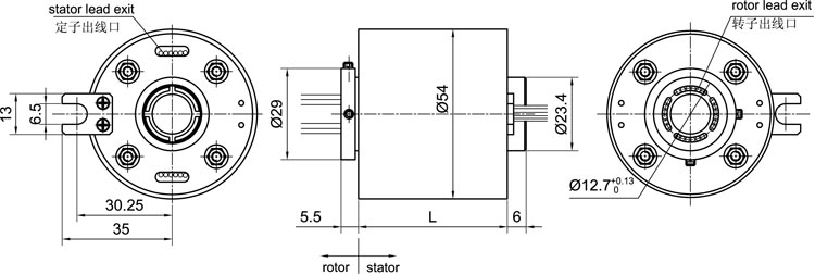 ■ 因我們的帽型滑環(huán)轉(zhuǎn)動扭矩很小,因此可將內(nèi)圈部分導(dǎo)線保護好后直接用于轉(zhuǎn)動或固定;