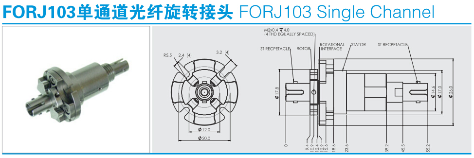 FORJ103光纖旋轉(zhuǎn)接頭用于單模或多模系統(tǒng)的光電旋轉(zhuǎn)連接;完全的雙向旋轉(zhuǎn);與現(xiàn)有的電氣滑環(huán)設(shè)計(jì)相融合;全封閉結(jié)構(gòu);能為客戶(hù)量身定制所需要的光纖滑環(huán)